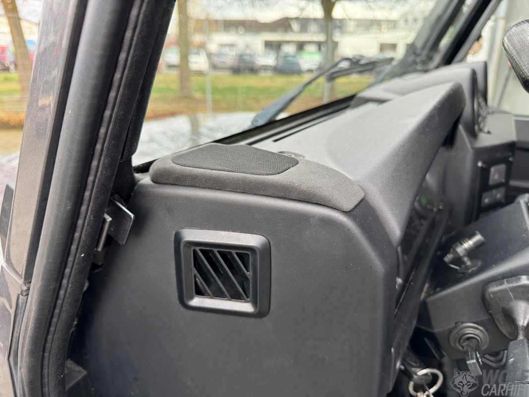 Der Land Rover Defender 90 ist ein echtes Offroad-Original – robust, markant und funktional. Was viele Besitzer jedoch kennen: Der Serienklang überzeugt kaum. Die werksseitigen Lautsprecher sitzen ungünstig – der Mitteltöner spielt direkt gegen das Knie, während auf dem Armaturenbrett lediglich ein Hochtöner montiert ist. Das Ergebnis: ein unausgewogener Klang mit wenig Räumlichkeit und kaum Mitten.