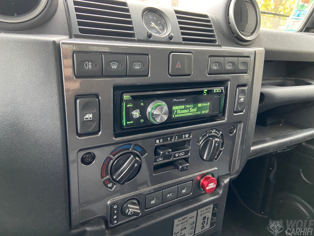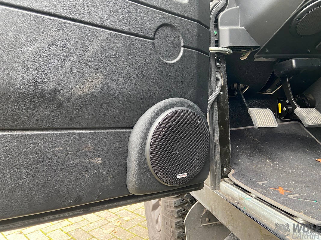 Mit dem Defender im Gelände unterwegs- mit gutem Sound.